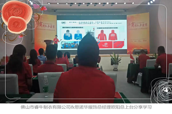 首先是總結,現場有很多各大各行業的企業家上臺來總結學習分享,我們總經理歐陽總被邀請上臺分享,請看以下圖片,PPT 上面寫著:好羽絨服睿牛制造,沖鋒衣睿牛更專業!國際品牌羽絨服生產廠家,團隊企業沖鋒衣定制專家!大家有這方面的需求可以記住我們并聯系思諾華工廠哦!