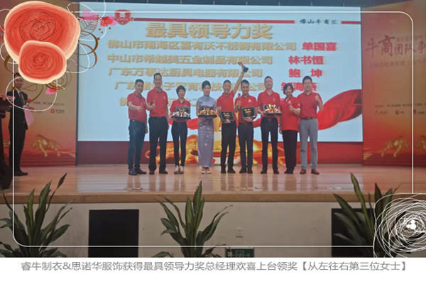 以下是睿牛制衣&思諾華服飾分別獲得了《榮譽企業獎》和《最具領導力獎》的圖片,歐陽總也是激動地小跑上臺的,思諾華能有今天的成就,我們的總經理付出了太多,也經歷了太多心酸和困難,感謝網絡營銷讓睿牛和客戶相識,也感謝牛商和單仁資訊讓我們學習了網絡營銷,讓更多客戶看到我們!