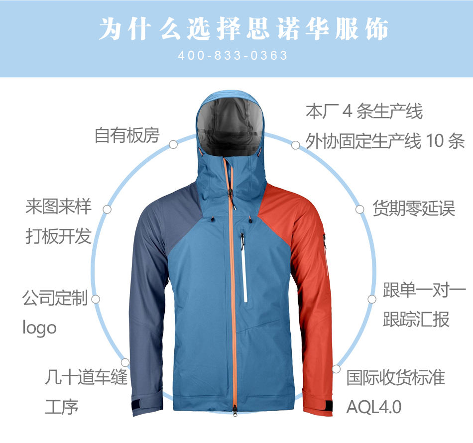 風帽抽繩:貼心小配件,可根據客戶的要求進行定制特殊配件,方便戶外活動。