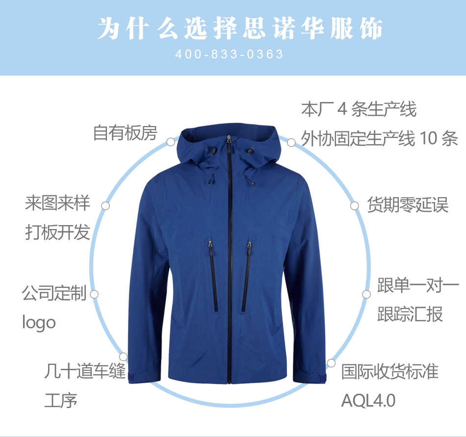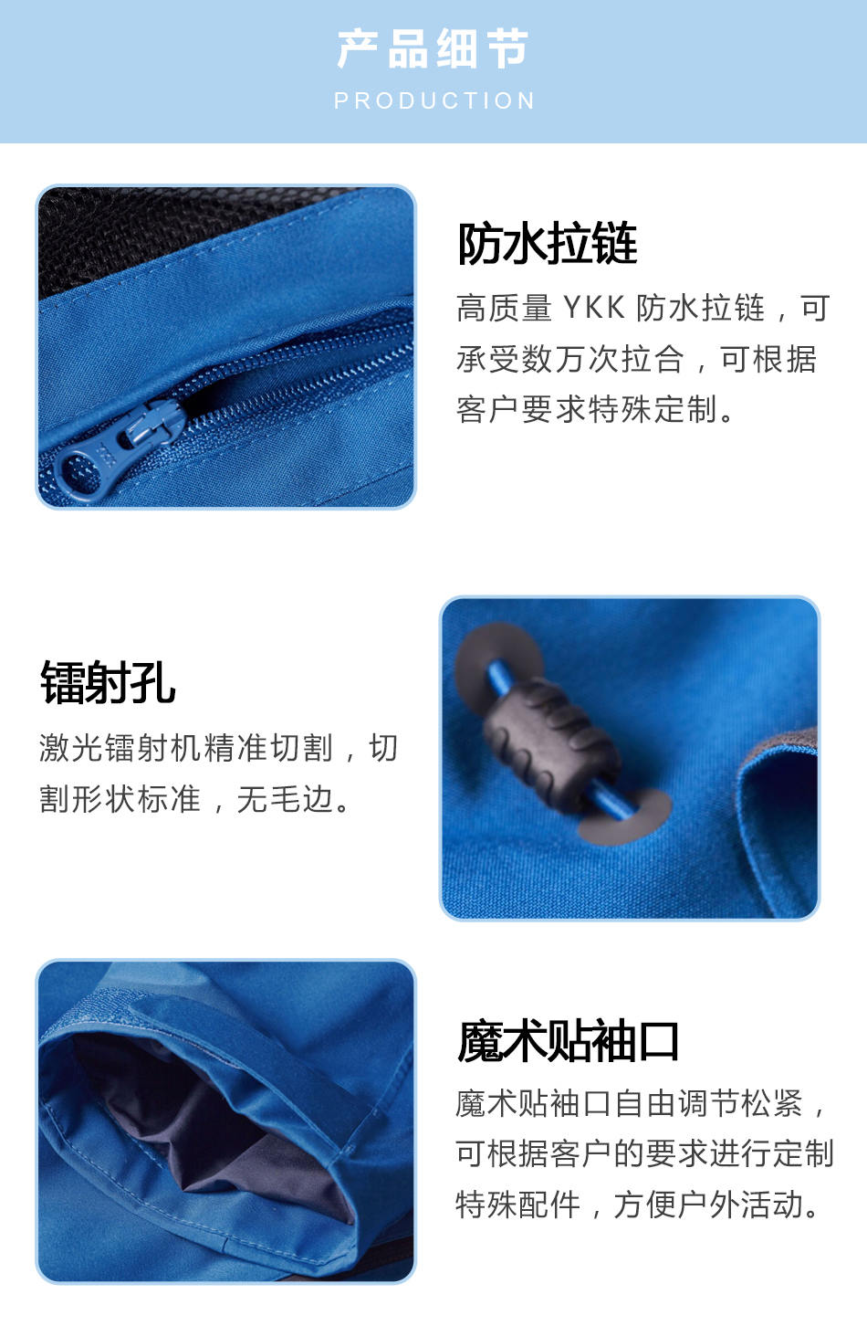 防水拉鏈:防水滑雪服定制高質(zhì)量YKK防水拉鏈,可承受數(shù)萬(wàn)次拉合,可根據(jù)客戶要求特殊定制。